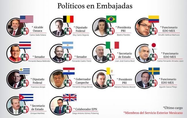 Entre las propuestas va la exgobernadora de Sonora, Claudia Pavlovich, para embajadora en Barcelona; y Carlos Miguel Aysa, exgobernador de Campeche, que se va para República Dominicana. Ambos son militantes del PRI.