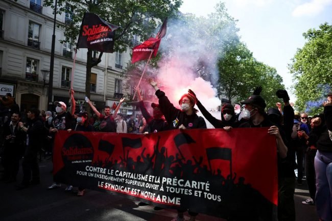 Miles de personas se unieron a las marchas del Primero de Mayo en Francia, pidiendo aumentos salariales y que Macron abandonara su plan para aumentar la edad de jubilación.
