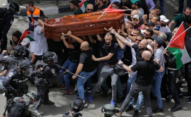 De acuerdo con The Guardian, la Policía de Israel señaló que su intervención se debió a que los asistentes al funeral estaban “perturbando el orden público” pero las personas solo estaban ondeando banderas de Palestina y cantando su himno mientras se unían a la procesión.
