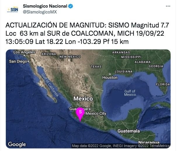 Otra vez en 19 de septiembre: un sismo de 7.7 de magnitud se registró en México este lunes, justo minutos después del Simulacro Nacional, que se hace cada año para conmemorar los temblores de 1985 y 2017. El epicentro fue en Coalcomán, Michoacán. Fue perceptible en CDMX y, al menos, cinco estados.