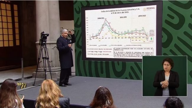 “De los delitos de alto impacto de 2019 al 2022 tenemos una reducción del 46.5 por ciento y se pasó de 160.2 delitos diarios a 64.5. (…) Nosotros entramos en diciembre del 2018 y después una reducción muy importante, en este momento estamos en 2.3 homicidios diarios promedio”.