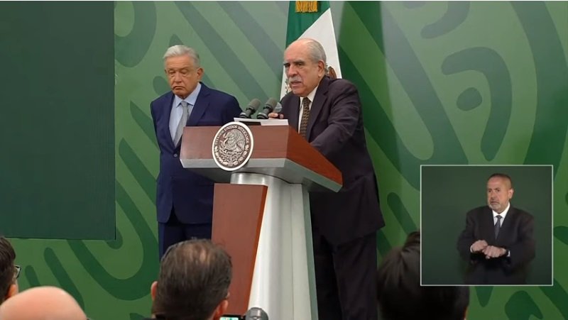 Acompañan al Presidente la secretaria de Seguridad, Rosa Icela Rodríguez, y el titular de la Unidad de Inteligencia Financiera, Pablo Gómez.