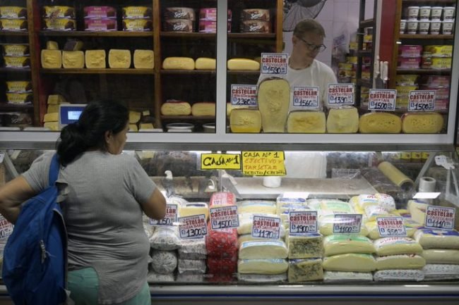 “Simplemente no queda nada, no hay dinero, la gente no tiene nada, entonces, ¿cómo compran?” dijo la jubilada Irene Devita, de 74 años, mientras revisaba las etiquetas de precios de los comestibles en una feria de mercado en San Fernando, en las afueras de Buenos Aires. “El otro día vine y pedí tres mandarinas, dos naranjas, dos plátanos y medio kilo de tomates. Cuando me dijo que costaba 650 pesos (32 pesos mexicanos), le dije que sacara todo y dejara solo los tomates porque no, no tengo suficiente dinero”.