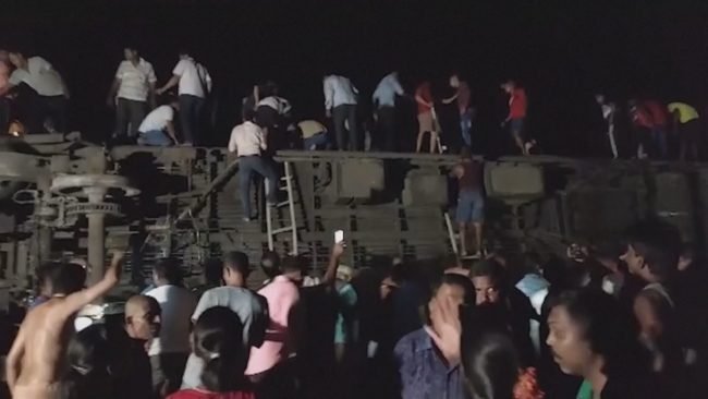 Al menos 300 personas resultaron heridas por la colisión de dos trenes de pasajeros que provocó, a su vez, que una decena de vagones volcasen en la vía opuesta y fueran golpeados por un tren de mercancías en el estado de Odisha, en el este de la India.