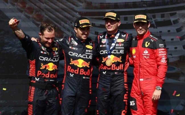 “Ha sido una gran carrera, con un gran resultado para el equipo”, afirmó, nada más bajarse del coche, Checo, nacido hace 33 años en Guadalajara (Jalisco) y que, después de firmar su trigésimo tercer podio en la F1 sigue segundo en el Mundial; ahora con 189 puntos, ahora a 125 del líder, su compañero el neerlandés Max Verstappen, que este domingo logró su décima victoria de la temporada.