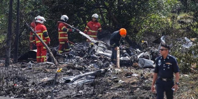 Un avión Beechcraft Model 390 (Premier 1), un jet de negocios privado ligero, transportaba a seis pasajeros y dos tripulantes cuando se estrelló cerca del municipio de Elmina a las 14:48 horas (locales), justo antes de aterrizar, dijo el jefe de policía de Selangor, Hussein Omar. Khan dijo a los periodistas. La aeronave perdió contacto con la torre de control de tráfico aéreo y chocó contra una motocicleta y un automóvil en la carretera.