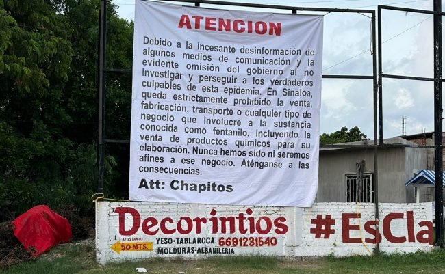 “Nunca hemos sido ni seremos afines a ese negocio. Aténganse a las consecuencias. Att. Chapitos”, decían las lonas en la parte final.