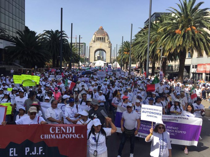 En consecuencia, más de 55 mil trabajadores del PJF marchan en punto de las 11:00 am desde el Monumento a la Revolución al Zócalo de la Ciudad de México.