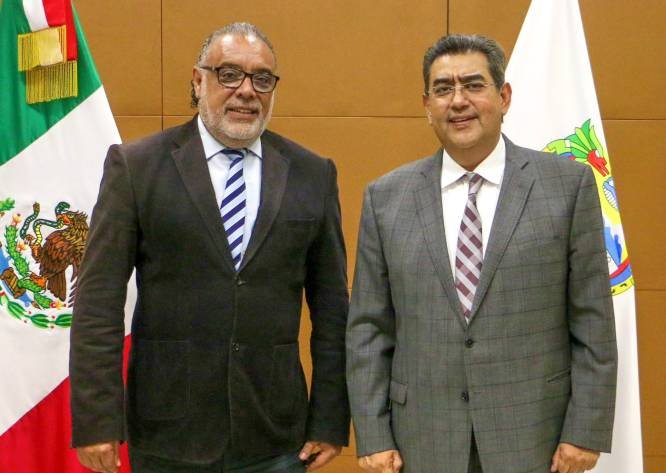 Sergio Salomón Céspedes, gobernador de Puebla recibió a Manuel Cervantes Ocampo, titular del Programa para unir al IMSS-Bienestar para continuar con los avances para pasar a este modelo de salud.