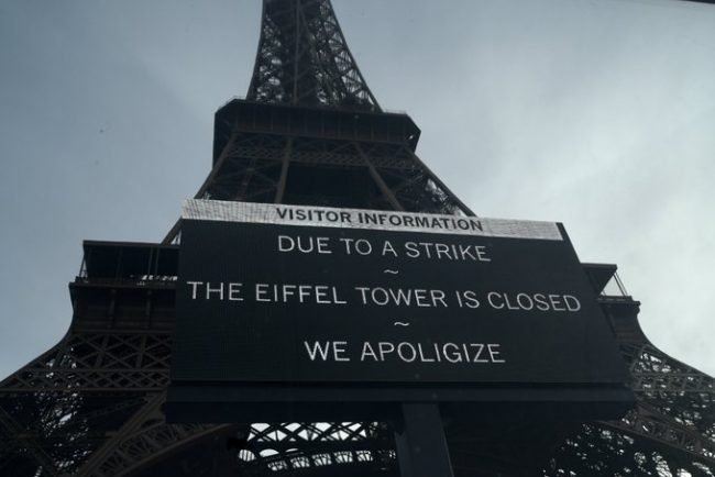 La Torre Eiffel cerró en pleno aniversario luctuoso de su creador por una huelga de trabajadores en Francia. Turistas, visitantes locales y parisinos en general se llevaron una sorpresa enorme cuando encontraron la Torre Eiffel cerrada, justo en pleno 100 aniversario luctuoso de su creador, el ingeniero Gustave Eiffel.