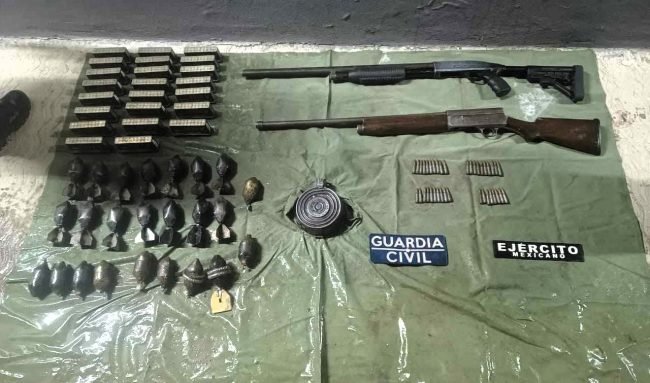 En total decomisaron más de 20 explosivos caseros, dos armas de fuego largas y diversos cargadores y cartuchos para armas de fuego de grueso calibre. Lo asegurado fue puesto a disposición del Ministerio Público.