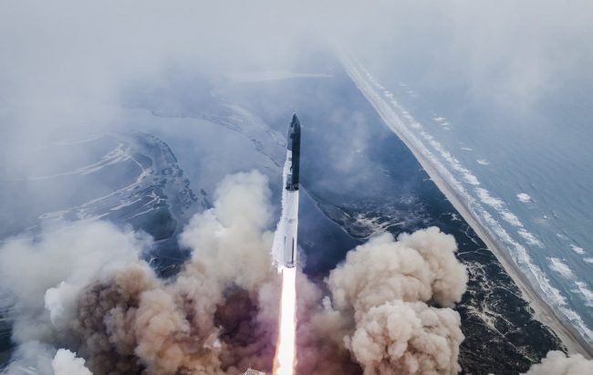 La nave espacial de dos etapas, que consta del crucero Starship montado sobre su imponente cohete propulsor Super Heavy, despegó desde el sitio de lanzamiento Starbase de la compañía propiedad de Elon Musk cerca de Boca Chica Village, en la costa sur del Golfo de Texas.