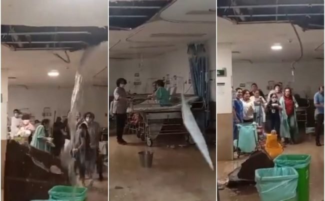 Una sección del techo del área de Urgencias del Hospital General del IMSS colapsó este sábado. El hecho fue capturado en video y se aprecia que había pacientes en el área.
