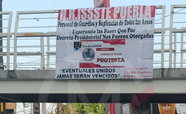 Un grupo de trabajadores eventuales del Issste en Puebla protestaron de manera pacífica por un salario digno y para formar parte del programa de basificación que impulso el presidente Andrés Manuel López Obrador.
