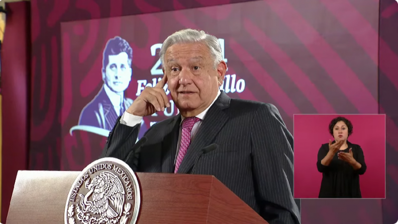 El presidente Andrés Manuel López Obrador inicia su conferencia matutina desde el Salon de la Tesorería en Palacio Nacional.