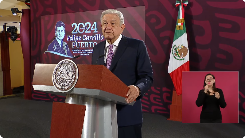 El presidente López Obrador explicó el diferendo existente con la empresa estadounidense que explota el banco de arena y grava en Quintana Roo.