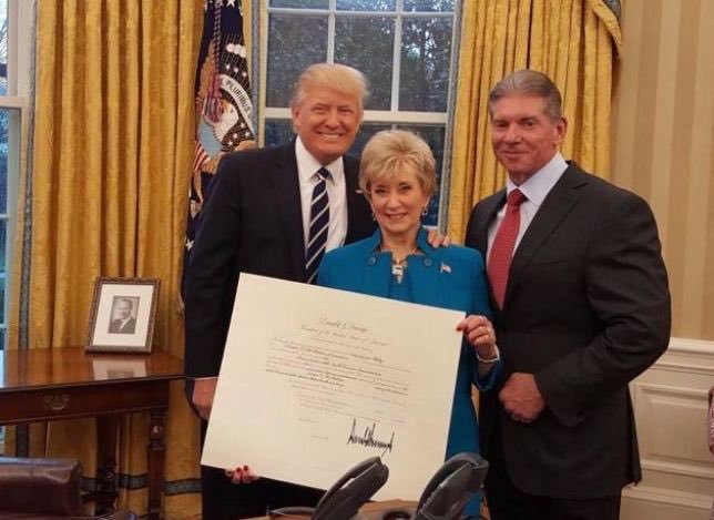 Junto con su esposo, Vince McMahon, la futura secretaria de Educación, fundó la WWE, una empresa estadounidense de medios y entretenimiento integrada principalmente por el área de la lucha libre profesional.