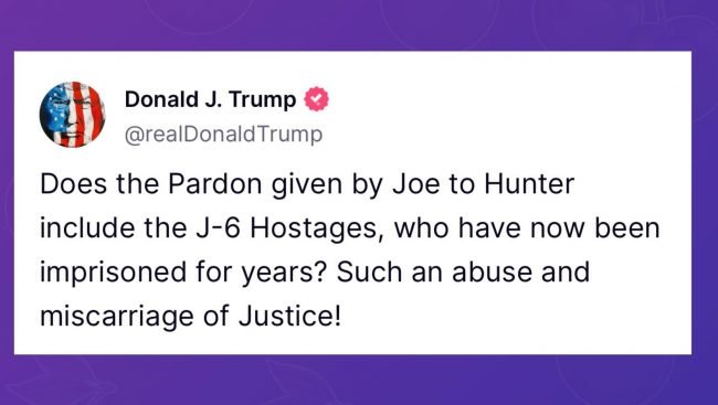 “¿Incluye el indulto concedido por Joe a Hunter a los rehenes del 6 de enero encarcelados desde hace años? Es un abuso y un error judicial”.