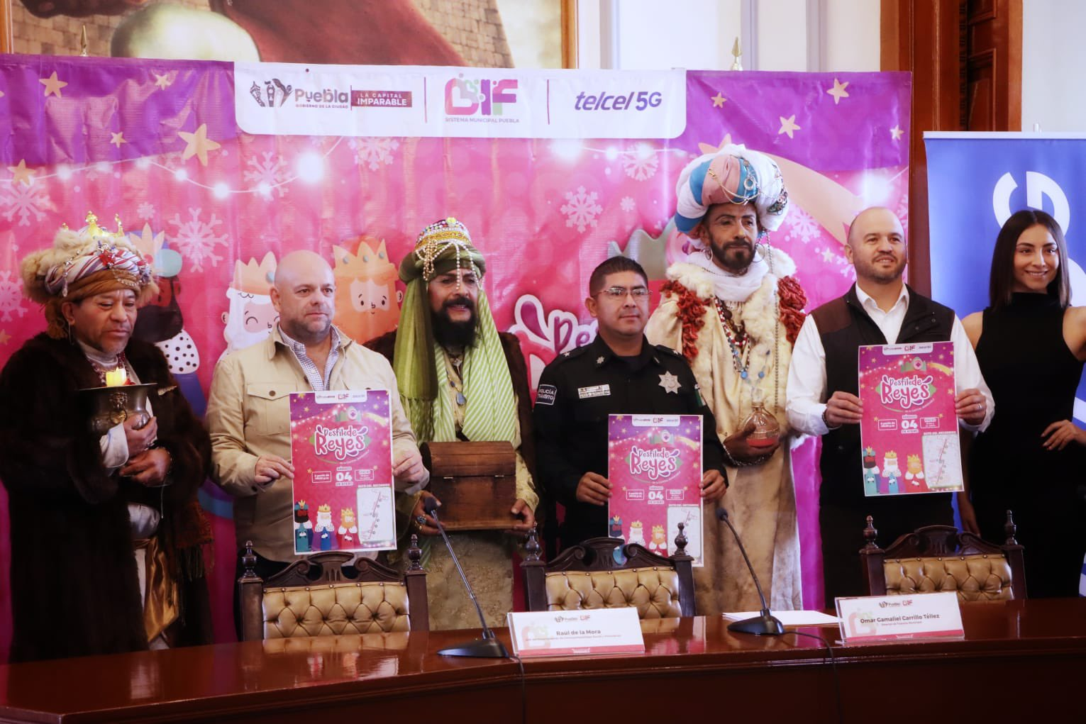 La presidenta del DIF Municipal de Puebla en conferencia de prensa, informó que el evento de los Reyes Magos iniciará en la avenida Juárez e invitó a todas los poblanos a unirse al desfile que ya es una tradición en Puebla que se realiza con la empresa telefónica Telcel. Los poblanos podrá disfrutar de 10 carros alegóricos con diferentes temáticas como el Señor Frío, la fábrica de juguetes, Reyes Magos con animales y muchas más sorpresas.