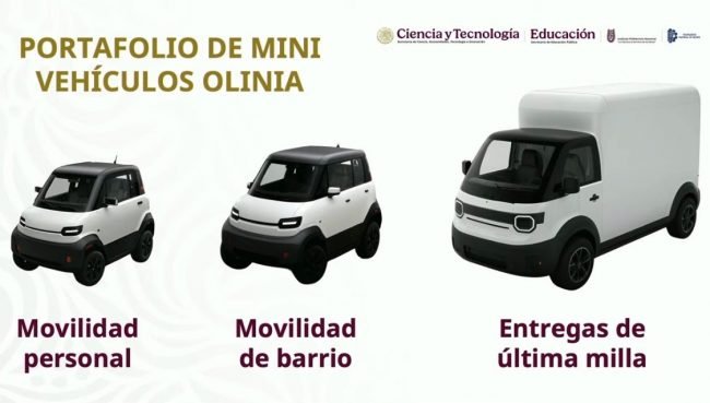 El Gobierno de México lanzó Olinia, primera armadora mexicana de mini vehículos eléctricos, que para finales del sexenio se espera que fabrique tres modelos con precios que van de los 90 mil a los 150 mil pesos.
