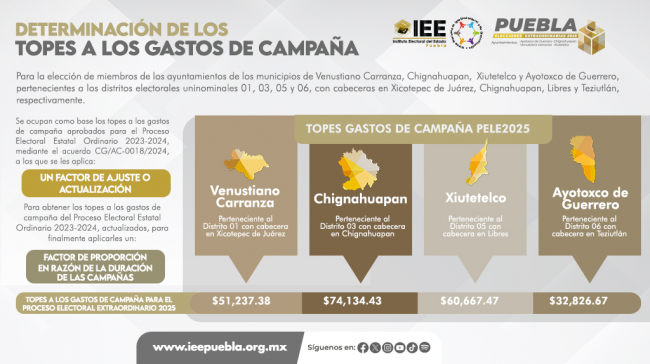 Las instituciones políticas accederán a la bolsa adicional de prerrogativas para contender en los municipios de Venustiano Carranza, Chignahuapan, Xiutetelco y Ayotoxco de Guerrero.