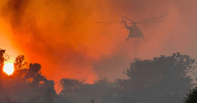 El helicóptero MI-17 realizó siete descargas de dos mil litros de agua cada una, sumando un total de 14 mil litros empleados en las labores de sofocación.