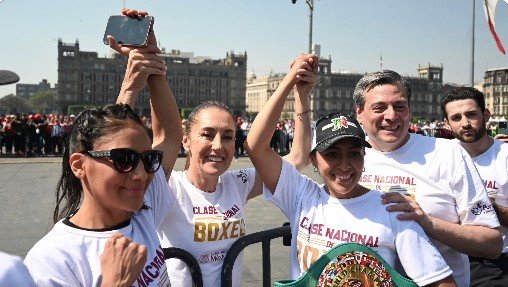 La presidenta Claudia Sheinbaum encabezó el arranque de la Clase Nacional de Boxeo en el Zócalo de la Ciudad de México. La mega clase de box se llevó a cabo con motivo del Día Internacional del Deporte para el Desarrollo y la Paz.