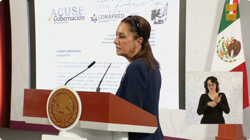 “Ahora, hemos decidido reponer el artículo y ponerlo nuevamente en la ley, es parte de las reformas que vamos a enviar el día de hoy o mañana, serán enviadas al Congreso, para que pues ningún gobierno extranjero, ninguna entidad de ningún gobierno extranjero, pues pueda pagar, porque el tema es que están pagando, para poder difundir estos anuncios, esta propaganda, que pues tiene un mensaje discriminatorio, evaluado por la propia Conapred”.