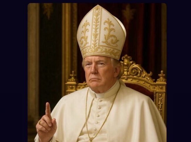 La imagen del gobernante estadounidense está hecha con la ayuda de la inteligencia artificial (IA) y lo presenta con sotana blanca, mitra, cruz dorada y parece estar por dar una bendición, ya que tiene el brazo derecho inclinado a la altura del hombro y con el dedo índice levantado.