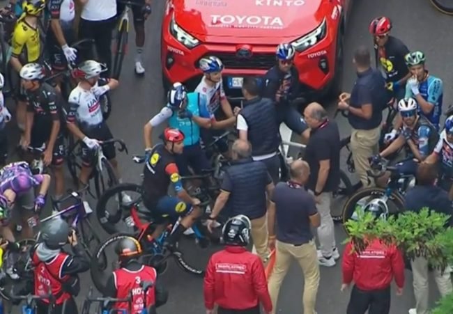 La sexta etapa del Giro de Italia 2025 que se disputa entre Potenza y Nápoles, con un recorrido de 227 kilómetros, la más larga de la presente edición, se ha neutralizado a 73 kilómetros de meta por una caída masiva que ha involucrado a más de una docena de corredores.