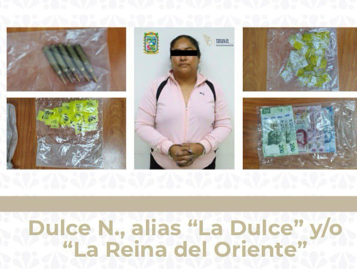 Dulce N. fue detenida en flagrancia delictiva el pasado 22 de mayo, cuando agentes investigadores la ubicaron a bordo de su vehículo, un Chrysler color beige con placas de San Luis Potosí (VDE-820-C), sobre las calles 6 Norte y 2 Oriente de la localidad de Chachapa, en el municipio de Amozoc.