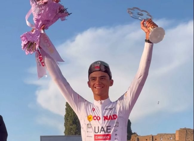 El del equipo UAE, se convirtió además en el ciclista más joven en subir al podio del Giro de Italia en los últimos 85 años y el segundo más joven de la historia, sólo detrás del italiano Fausto Coppi, quien en 1940 se coronó en esa edición.