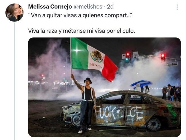 “‘Van a quitar visas a quienes compart…’ Viva la raza y métanse mi visa por el cu…”, manifestó la consejera de Morena en redes sociales.