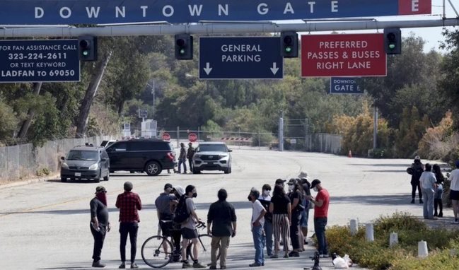Medios estadounidenses viralizaron las imágenes de los agentes migratorios estadounidenses encapuchados intentar ingresar a Dodgers Stadium por una de sus puertas, sin embargo fueron rechazados y después escoltados por patrullas del Departamento de Policía de Los Ángeles.