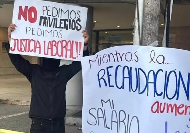 Los trabajadores del SAT exigen que se aplique el incremento de 12 por ciento efectuado al salario mínimo general vigente desde el 1 de enero de 2025, lo que eleva el salario diario general a 278.80 pesos.