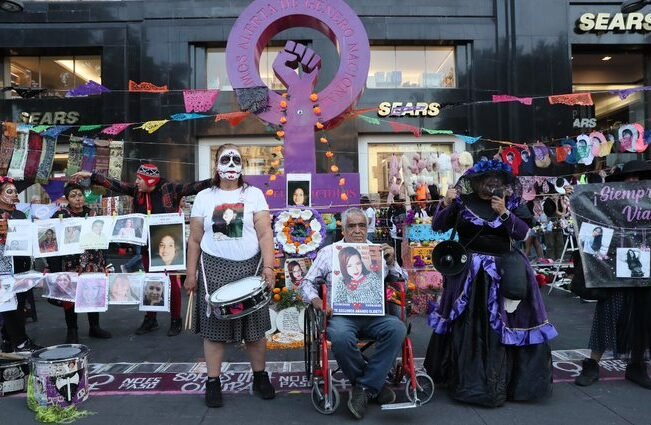 Diversos colectivos feministas y familiares de víctimas de feminicidio y desaparición colocaron este viernes una ofrenda del Día de Muertos en la Antimonumenta, ubicada frente al Palacio de Bellas Artes, en el centro de la Ciudad de México, para honrar la memoria de las mujeres y niñas que han sido asesinadas o que siguen desaparecidas en el país.