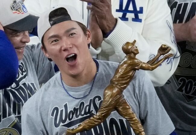 Tras esto y el jonrón de Will Smith, el japonés sacó los últimos tres outs, para así conseguir su tercer triunfo en este Clásico de Otoño y darle el título a los Dodgers. Así, después de tres apariciones, Yamamoto cerró la Serie Mundial con una efectividad de 1.02 en 17.2 innings de labor, marca de 3-0 y 15 ponches.