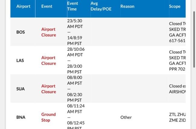 De acuerdo con el portal de seguimiento Flightaware, el 8 de noviembre se registraron mil 526 vuelos cancelados, siendo los aeropuertos de Hartsfield-Jackson (Atlanta), el Newark (Nueva Jersey), Charlotte (Carolina del Norte), el John F.Kennedy de Nueva York y el Internacional de Chicago los más afectados.