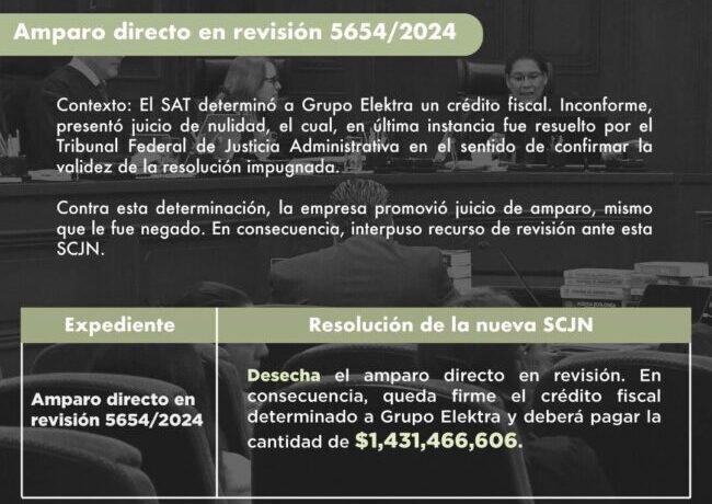 Luego de que el grupo Elektra impugnara antes la determinación del crédito fiscal, ahora la nueva suprema corte pone fin al intento de evadir el pago de más de 33 mil millones de pesos.