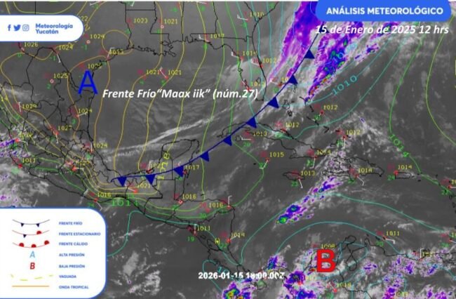 La masa de aire polar asociada a este frente mantendrá un ambiente frío a gélido sobre entidades de la Mesa del Norte y la Mesa Central, propiciando la formación de bancos de niebla matutinos. En contraste, en el sureste y la península de Yucatán prevalecerá un ambiente fresco a templado.