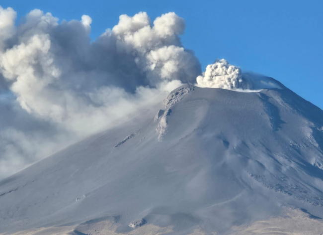 Además, desde las 07:59 horas presenta exhalación de gas, vapor de agua y ceniza, con una altura aproximada de 0.5 kilómetros, con mayor dispersión al municipio de Tochimilco.