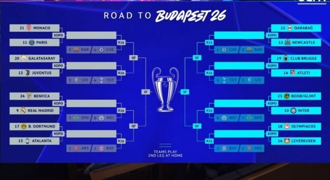 Se llevó a cabo en Nyon, Suiza, el sorteo de los Dieciseisavos de Final de la UEFA Champions League 2025-26 y quedaron definidos los emparejamientos de dicha fase.